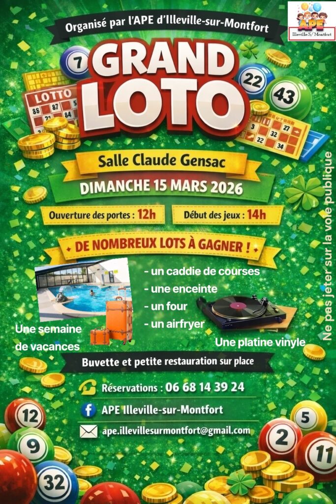 Grand loto Organisé par l’APE d’Illeville-sur-Montfort.